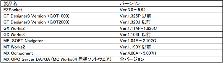 複数のFAエンジニアリングソフトウェア製品 < 対象機種 > 製品名:バージョンEZSocket:Ver.3.0~5.92GT Designer3:Version1(GOT1000) Ver.1.325P 以前GT... Read More